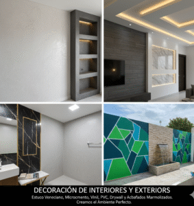 Transformamos tus espacios con creatividad y un acabado profesional. Nos especializamos en una variedad de técnicas de pintura y recubrimientos, incluyendo estuco veneciano, microcemento, vinil, pvc, y acabados marmolizados. Además, realizamos trabajos de drywall, desde techos y paredes, hasta nichos y muebles a medida. Creamos el ambiente perfecto para ti.