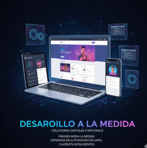 Convertimos tus ideas en soluciones digitales funcionales. Ofrecemos desarrollo de software y páginas web completamente a la medida. Además, creamos aplicaciones móviles (APK), sistemas de automatización y chatbots que te ayudarán a optimizar tus procesos y a llevar tu negocio al siguiente nivel.